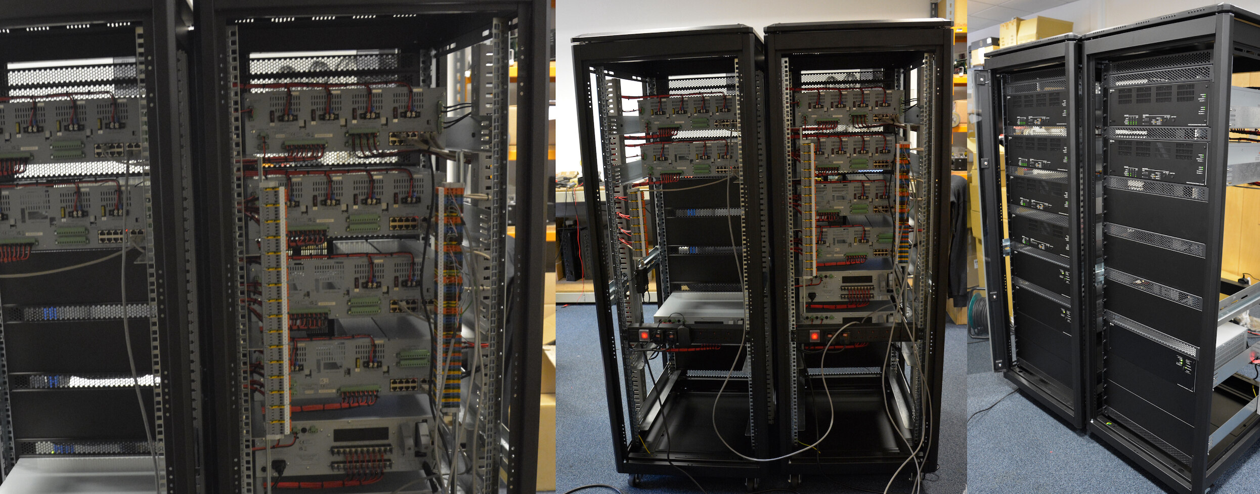 These racks have been custom-built to be installed in a Museum. They will deliver voice alarm and public address. Unusual due to the contour of the rack rails the cabling has had to be installed in a sweeping curve to accommodate their shape. Very neat from our technical team.