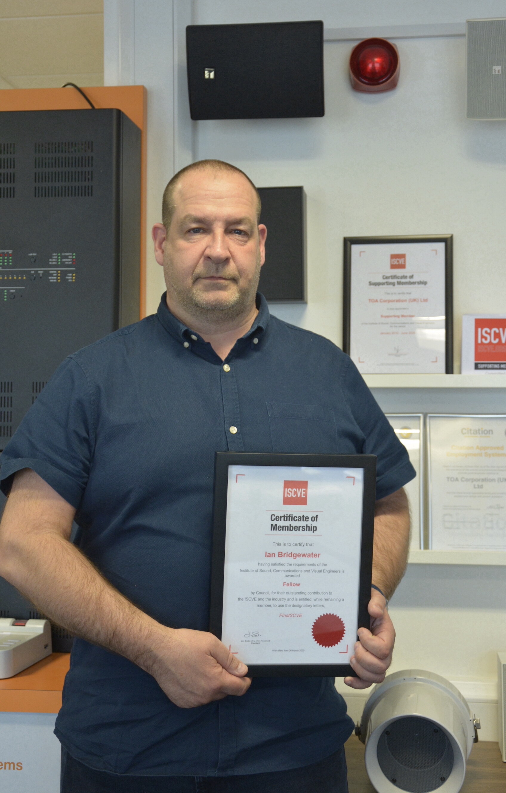 At the Institute of Sound, Communication and Visual Engineers’ recent AGM, conference and exhibition, it was announced that the Board of ISCVE had decided to honour Ian Bridgewater, Managing Director of TOA Corporation (UK) Ltd with a fellowship of the Institute.